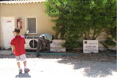 As was explained to me by the official with the JNF Afforestation Division, Golani Centre, who bewailed the fact that "Jews" represent a demographic minority in the lower Galilee [the Palestinian Nakba notwithstanding], the marble plaques of the Queen Beatrix of Holland have been removed from the memorial stone in the JNF forest dedicated to her name and stored in the safety of the Golani Centre depo to protect it from the "vandalism" of the neighbouring Palestinian Arab population, citizens of the State of Israel, resident in the surrounding villages. Since I had contacted the said Golani Centre in advanced and expressed specific interest in the Willy Brandt Forest, explaining that I need to visit the site in advance of a lecture in Stuttgart, the conscienteous official fitted the Willy Bradt marble plaque back into its designated niche in the Willy Brand memorial stone for me to photograph, whereupon it was returned to the safety of the Golani Centre depo.